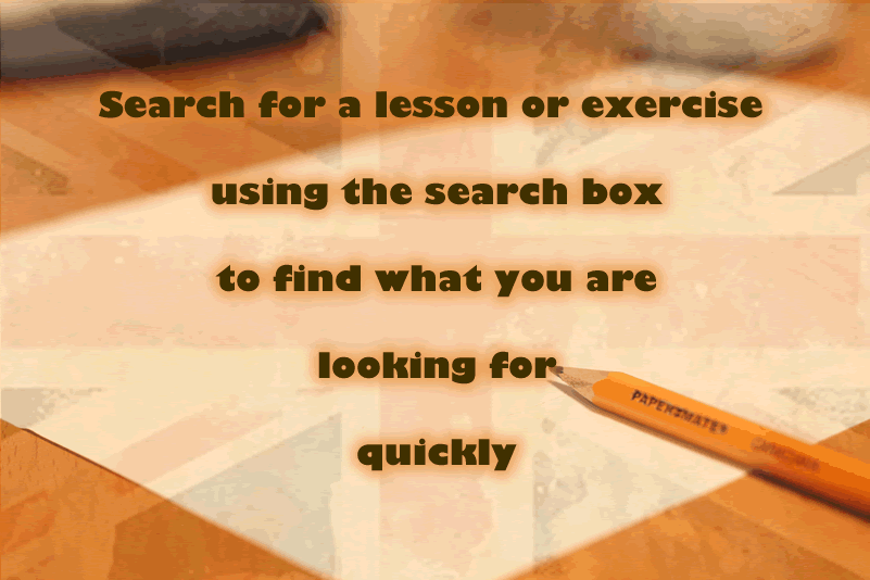 A quick way to find a lesson or exercise is using this search option. By entering a few words in the search box you will see a list of all the English lessons and exercises that are available on the website.