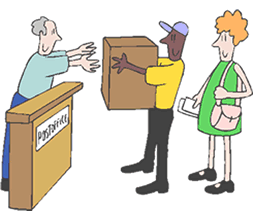 Postal office clerk: OK, pass me the parcel through the opened window and let’s see how much it weighs. It weighs 3 kilos. you need to send it by airmail, it will get there in about 7 days.