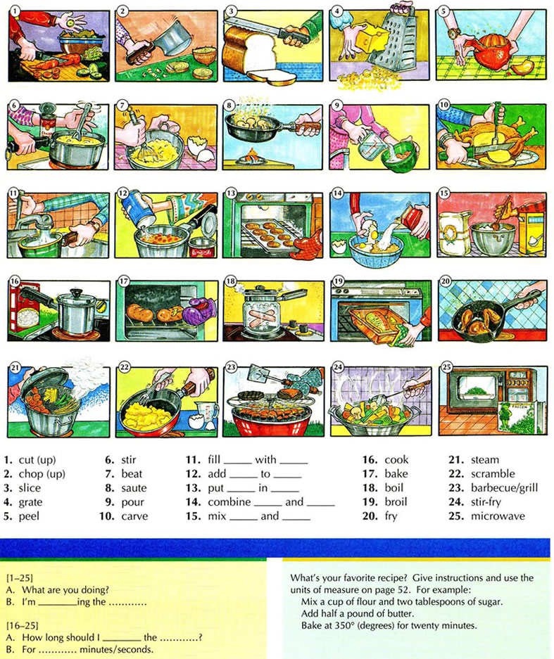 Print the English lesson on learning about vocabulary for food preparation and recipes
