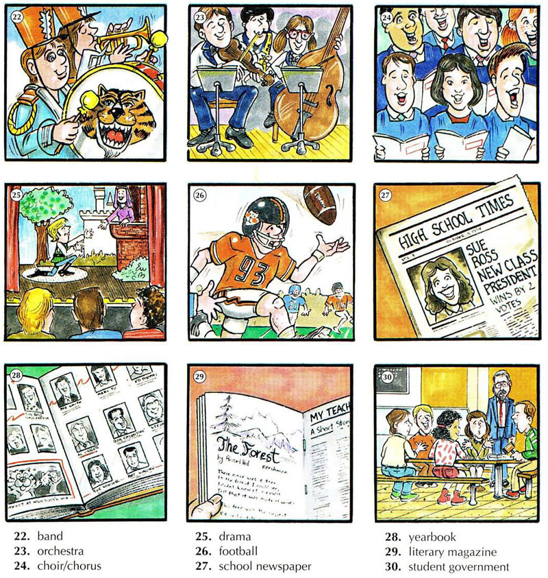 School subjects and after school activities / extra curricularactivities vocabulary with pictures