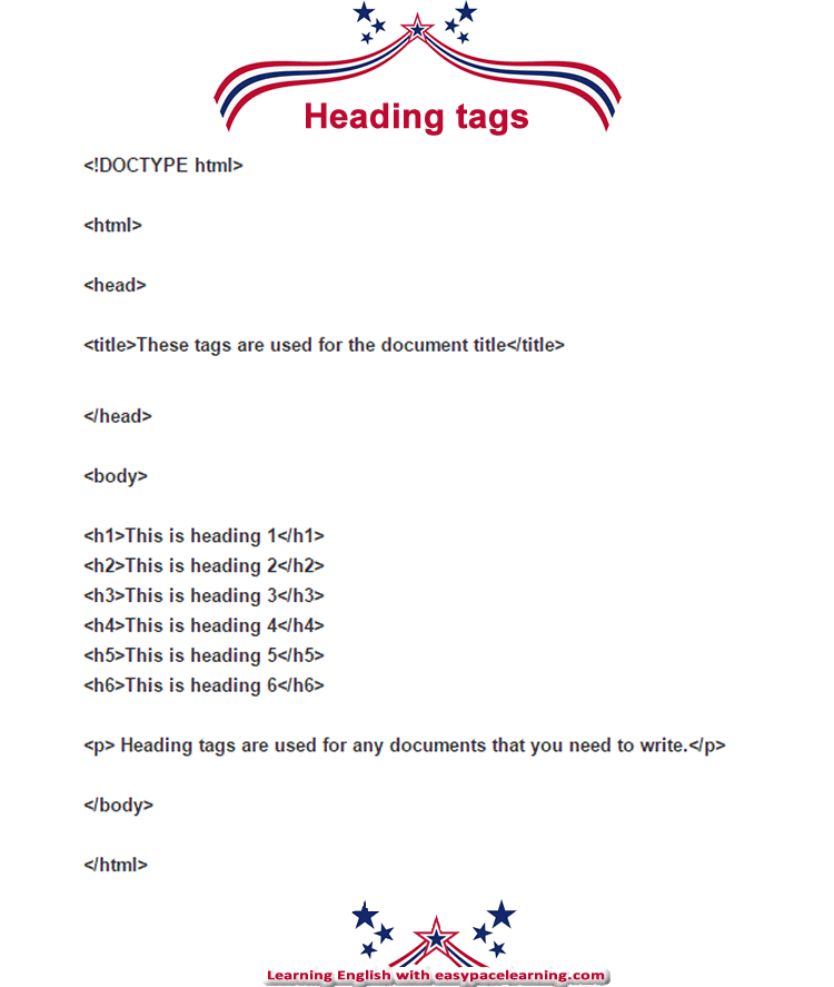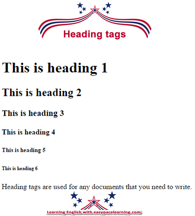 Heading tags are used for making headings on a webpage. There are 6 heading tags, which are: