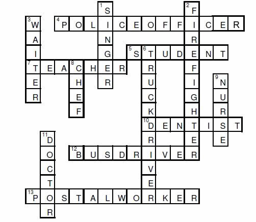 Below is the answers to the crossword about jobs clink on the link to view the crossword again Jobs crossword learning basic English