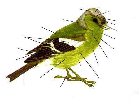 To complete the exercise on various parts of a bird, write the correct vocabulary for each part.